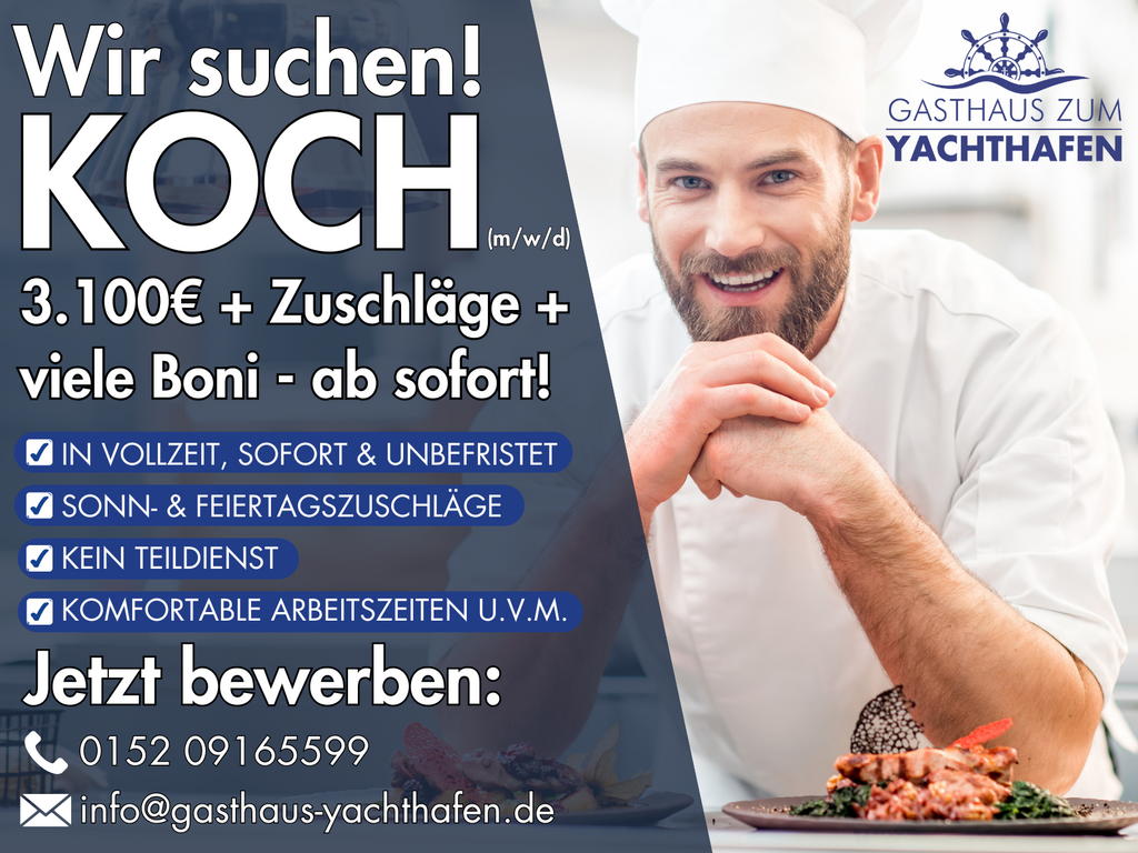 Wir vom Gasthaus zum Yachthafen sind ein familiengeführtes Unternehmen mit Restaurant, Catering und Eventlocation in Salzmünde. Nun suchen wir Verstärkung in unserer Küche zur UNBEFRISTETEN EINSTELLUNG ALS KOCH IN VOLLZEIT❗